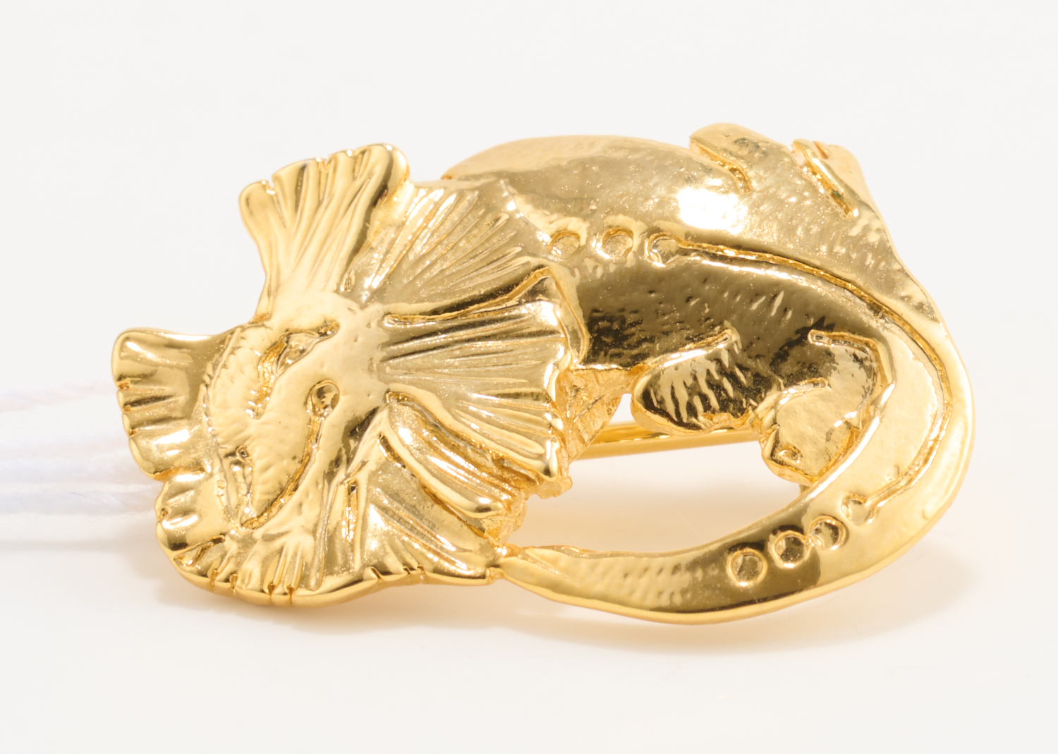 A FRILLNECK LIZARD BROOCH, GOLD PLATED BY CAROLYN MELOY, RETAILED BY MAKERS MARK