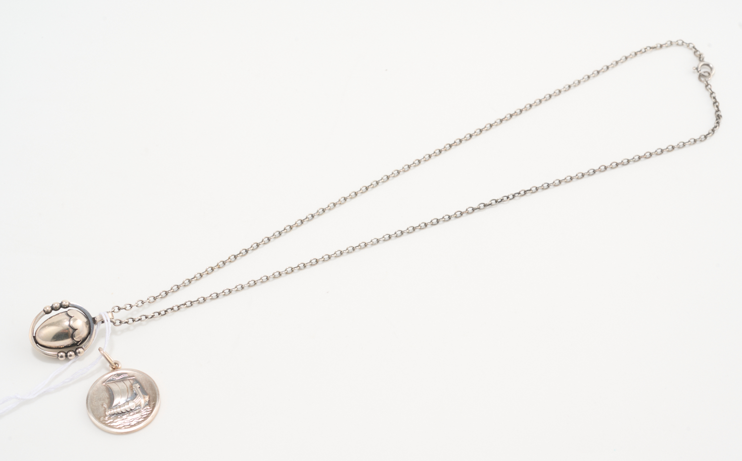 AN ACORN PENDANT NECKLACE, TOGETHER WITH A GALLEON PENDANT, BOTH IN STERLING SILVER BY GEORG JENSEN