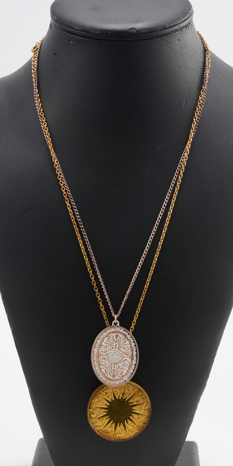 A PENDANT NECKLACE IN STERLING SILVER, TOGETHER WITH A GOLD PLATED NECKLACE