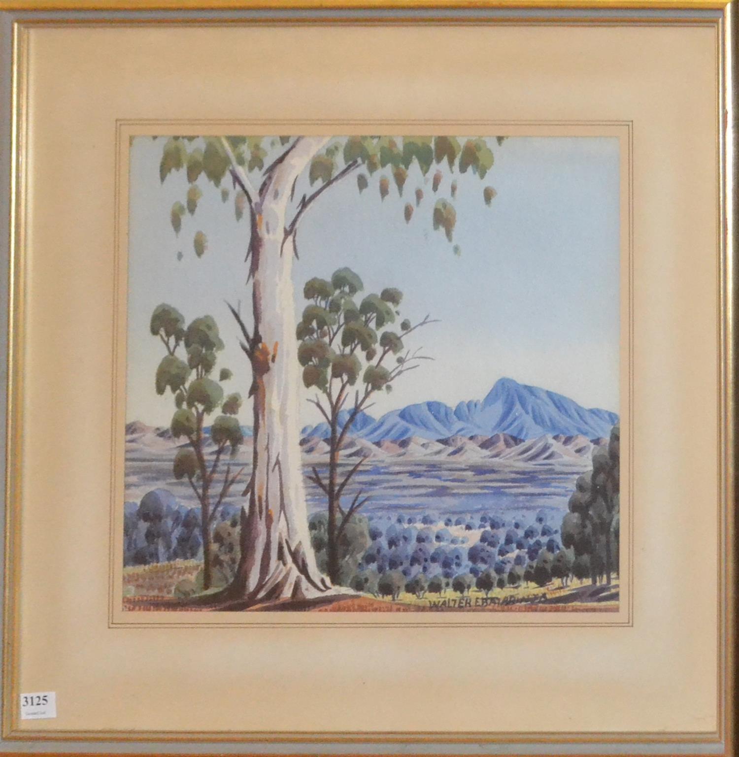 WALTER EBATARINJA, CENTRAL AUSTRALIAN LANDSCAPE, WATERCOLOUR, 32 X 36CM, CR: GOOD, MOUNT SHOWING SIGNS OF AGEING, FRAME SIZE: 51 X 55CM