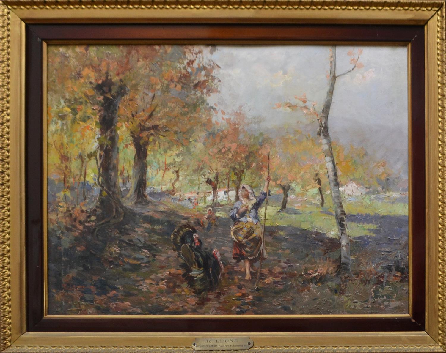 R. LEONE, ON THE FARM, OIL ON BOARD, 46 X 61CM