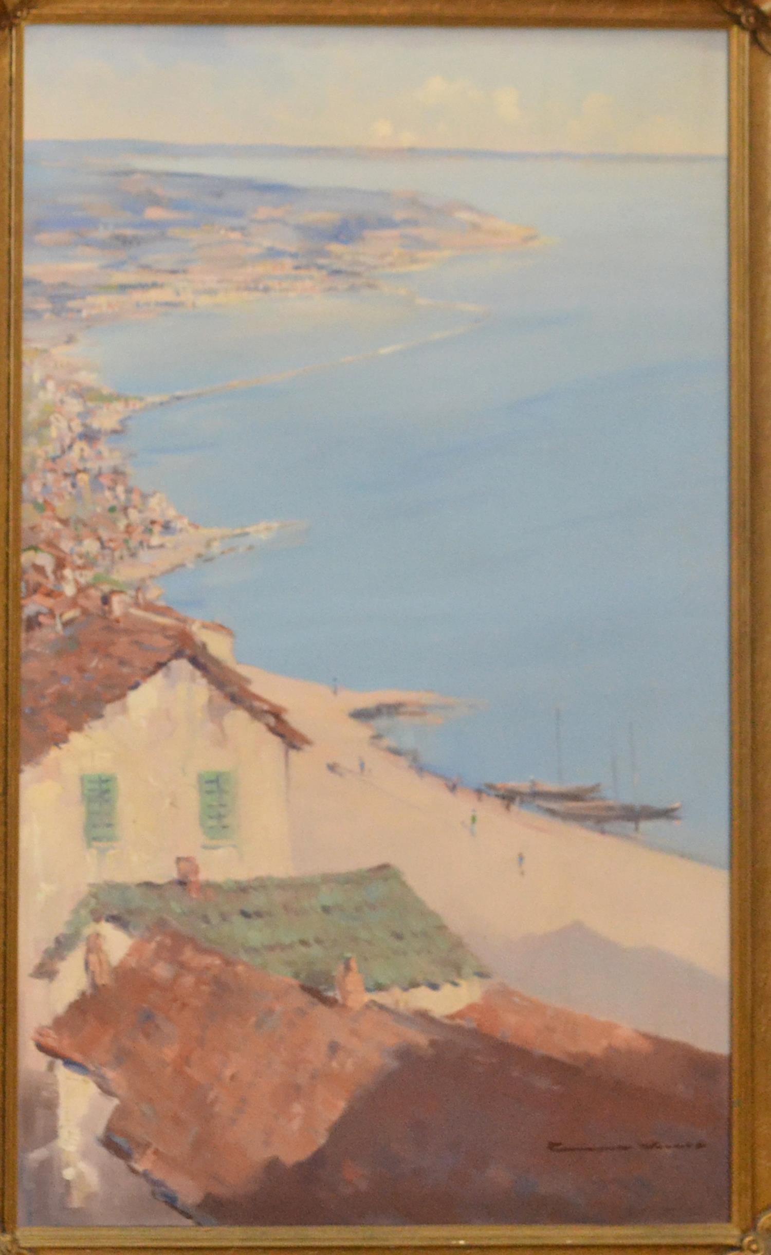 RAYMOND WALLIS, COASTAL VIEW, OIL ON CANVAS, 91 X 55CM