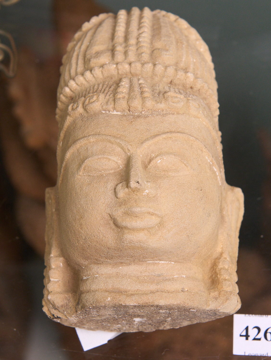 A EARTHENWARE BUDDHA HEAD (14 CM H), LEONARD JOEL LOCAL DELIVERY SIZE: SMALL