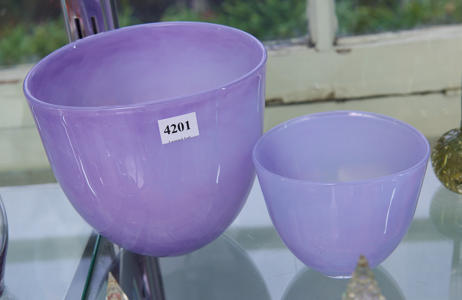 A PAIR OF KOSTA BODA LILAC BOWLS (16 CM H), LEONARD JOEL LOCAL DELIVERY SIZE: SMALL