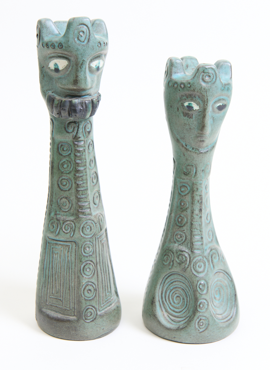 MCLAREN POTTERY KING AND QUEEN SALT AND PEPPER SHAKERS INCISED 'MCLAREN' TO BASE H.26CM, LEONARD JOEL LOCAL DELIVERY SIZE: SMALL