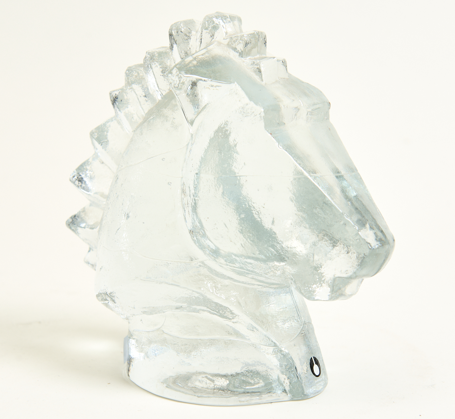 A PUKEBERG SWEDEN GLASS HORSE HEAD ORNAMENT H.16CM, LEONARD JOEL LOCAL DELIVERY SIZE: SMALL