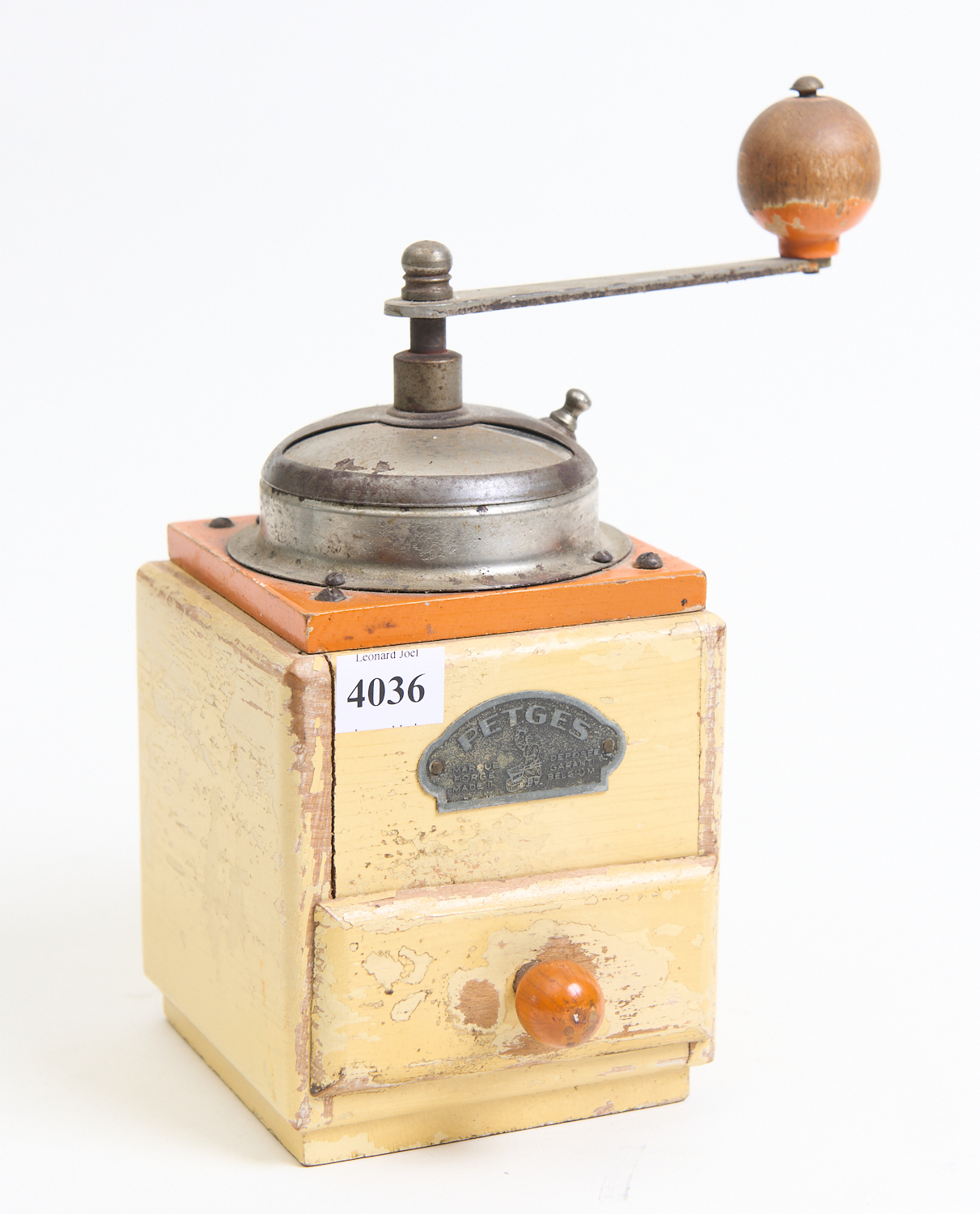 A WOODEN COFFEE GRINDER, PETGES BELGIUM, LEONARD JOEL LOCAL DELIVERY SIZE: SMALL