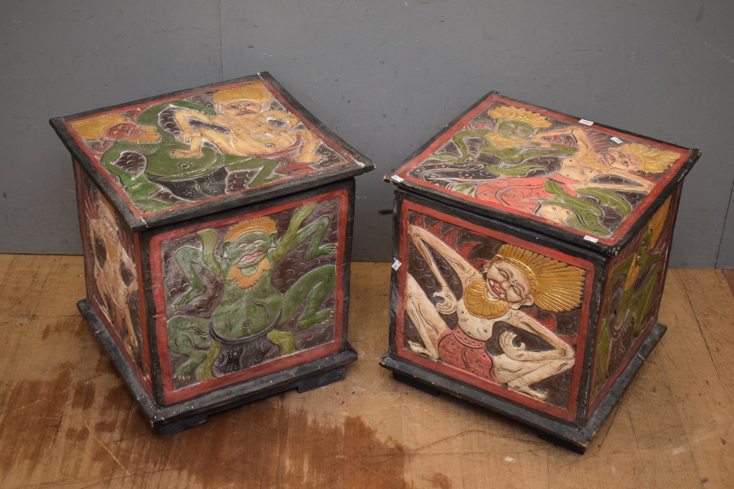 TWO CARVED BALINESE BOXES (A/F) (49H x 45W x 45D CM) (LEONARD JOEL DELIVERY SIZE: LARGE)