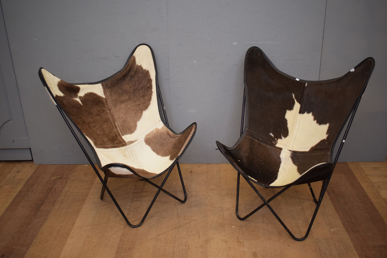 TWO COWHIDE BUTTERFLY STYLE CHAIRS (A/F) (100H x 82W x 72D CM) (LEONARD JOEL DELIVERY SIZE: LARGE)