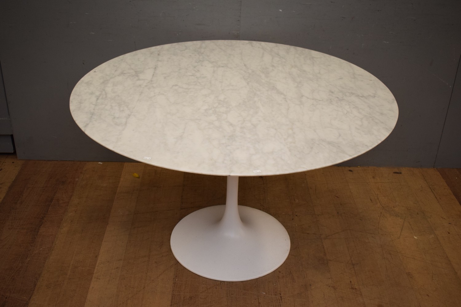 A REPLICA CARRARA MARBLE TOPPED SAARINEN TULIP TABLE (71H x 121D CM) (PLEASE NOTE THIS HEAVY ITEM MUST BE REMOVED BY CARRIERS AT THE CUSTOMER'S EXPENSE. LEONARD JOEL STAFF CANNOT ASSIST CARRYING THIS ITEM) (X-LARGE ITEM)