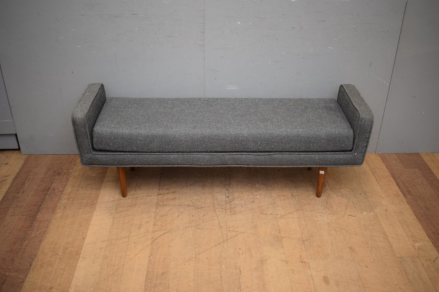 A MID-CENTURY STYLE UPHOLSTERED BENCH SEAT (55H x 149W x 42D CM) (LEONARD JOEL DELIVERY SIZE: LARGE)