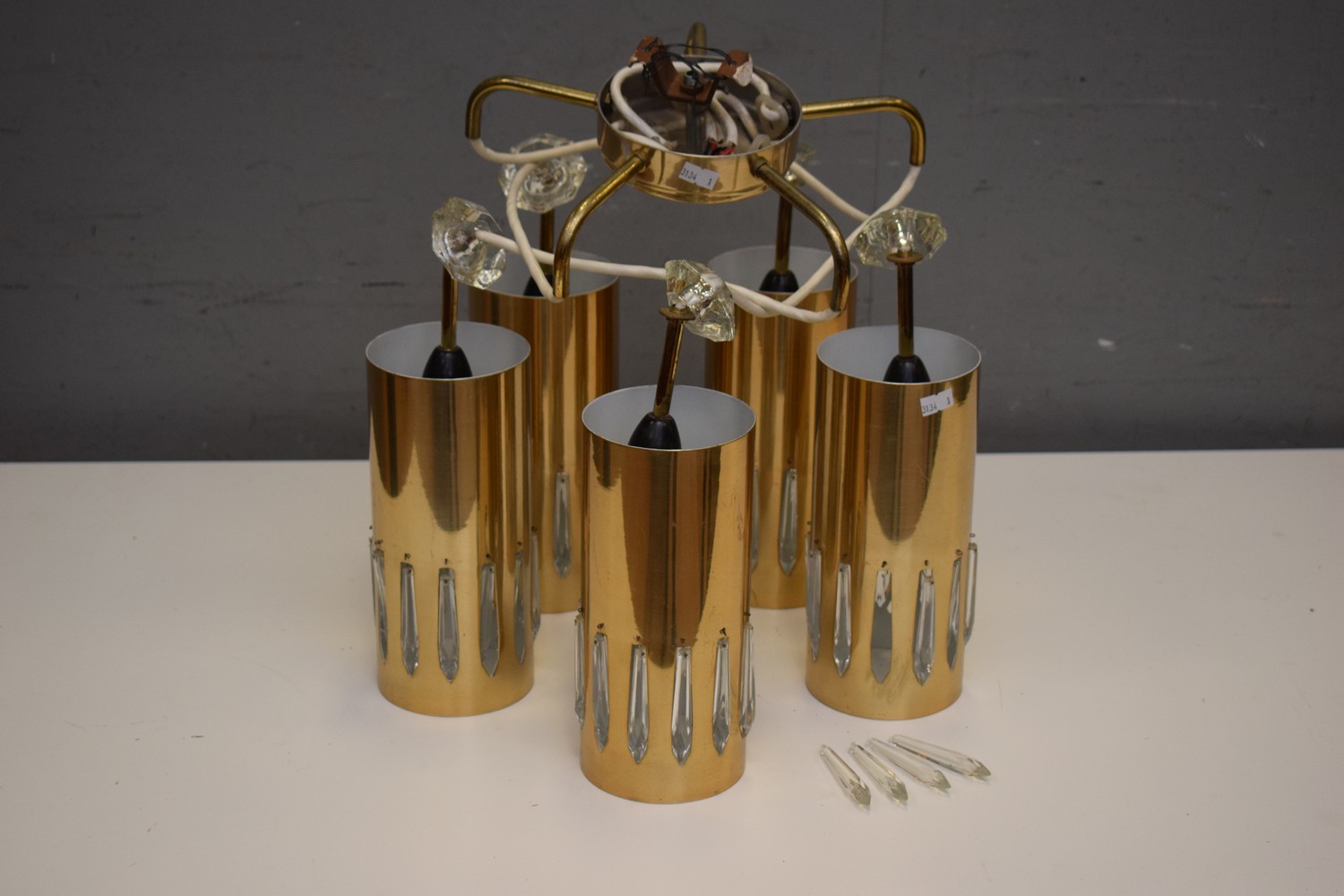 A KEMPTHORN FIVE BRANCH CHANDELIER (A/F) (58H x 42D CM) (LEONARD JOEL DELIVERY SIZE: LARGE)