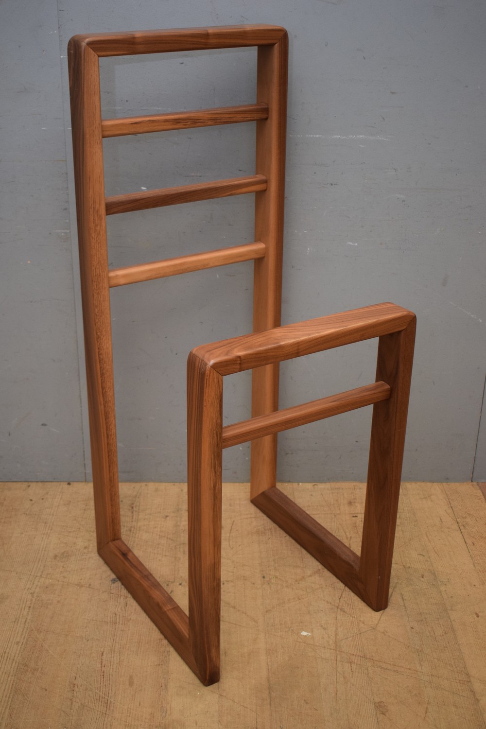 A STYLISED HARDWOOD VALET (125H X 50W X 55D CM) (LEONARD JOEL DELIVERY SIZE: LARGE)