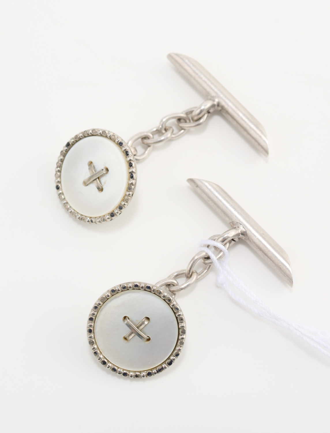 A PAIR OF MOTHER-OF-PEARL SET CUFFLINKS IN SILVER, 6.79GMS