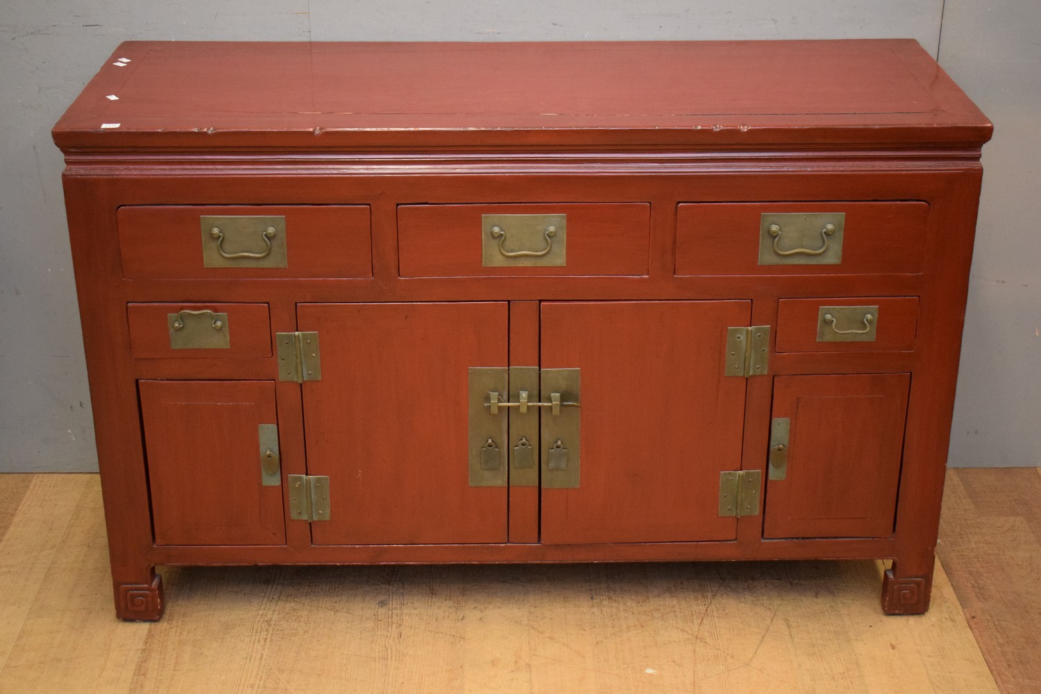 A CHINESE LACQUERED SIDEBOARD (87H x 139W x 51D CM) (PLEASE NOTE THIS HEAVY ITEM MUST BE REMOVED BY CARRIERS AT THE CUSTOMER'S EXPENSE. LEONARD JOEL STAFF CANNOT ASSIST CARRYING THIS ITEM) (X-LARGE ITEM)