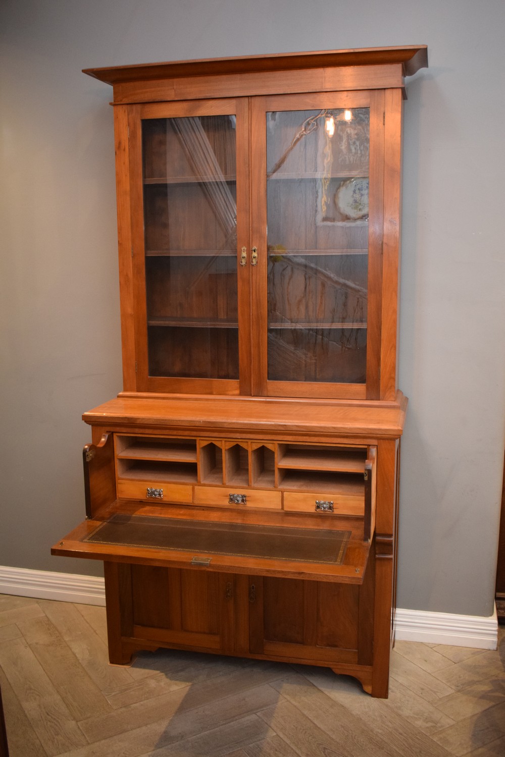 A DOUBLE BODIED BOOKCASE SECRETAIRE ( 245H X 122W X 52D CM) (PLEASE NOTE THIS HEAVY ITEM MUST BE REMOVED BY CARRIERS AT THE CUSTOMER'S EXPENSE. LEONARD JOEL STAFF CANNOT ASSIST CARRYING THIS ITEM) (X-LARGE ITEM)