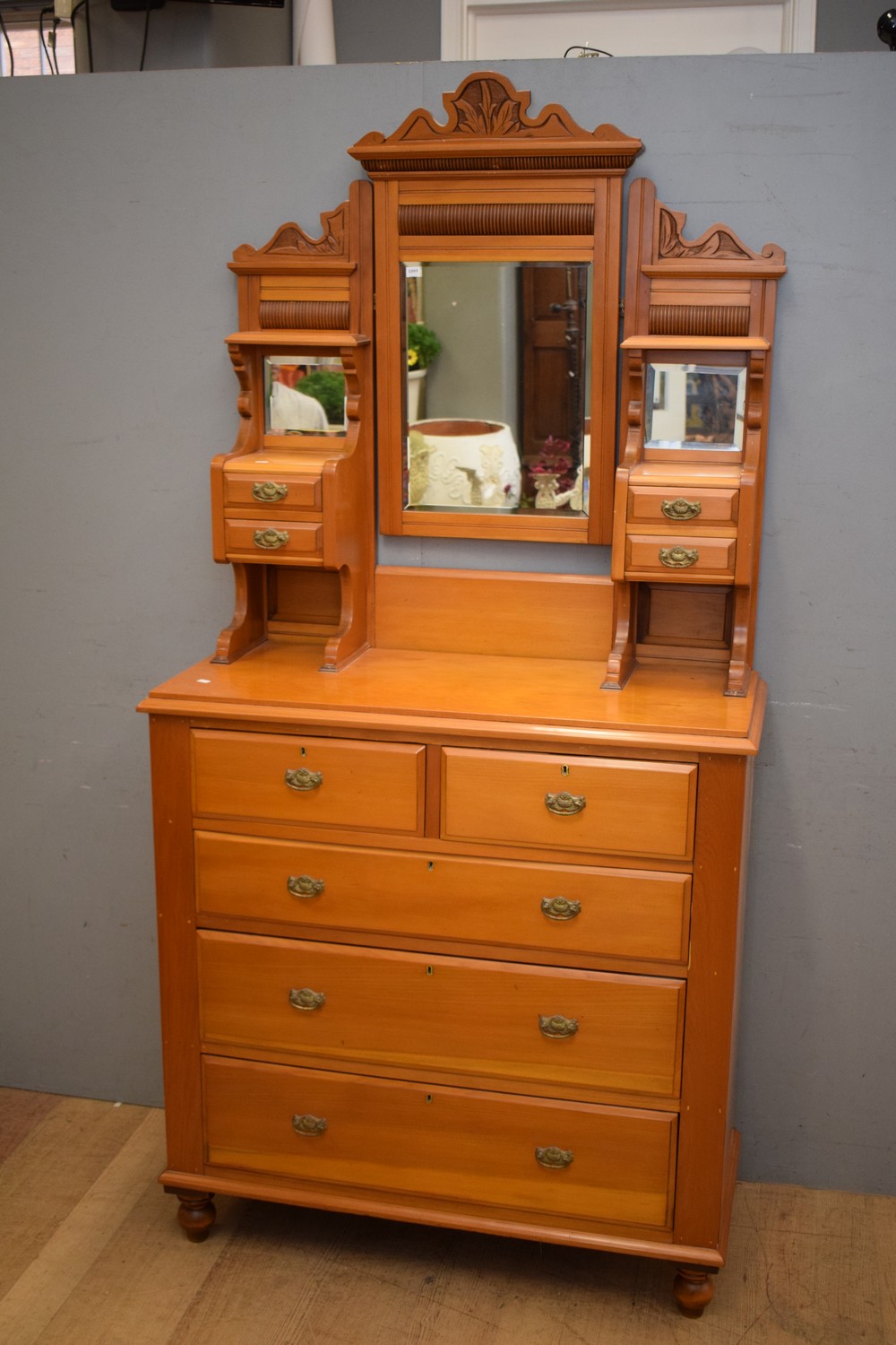 AN EDWARDIAN DRESSER (212H x 102W x 47D CM) (PLEASE NOTE THIS HEAVY ITEM MUST BE REMOVED BY CARRIERS AT THE CUSTOMER'S EXPENSE. LEONARD JOEL STAFF CANNOT ASSIST CARRYING THIS ITEM) (X-LARGE ITEM)