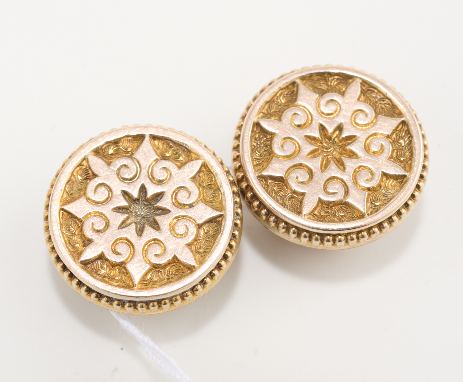 A PAIR OF SHIRT STUDS IN 9CT GOLD. 4.2GMS
