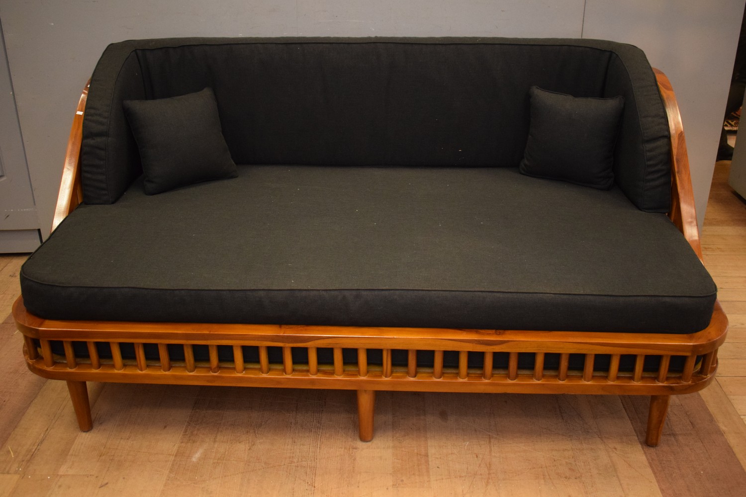 A SCANDINAVIAN INSPIRED TEAK SOFA (102H x 212W x 131D CM) (PLEASE NOTE THIS HEAVY ITEM MUST BE REMOVED BY CARRIERS AT THE CUSTOMER'S EXPENSE. LEONARD JOEL STAFF CANNOT ASSIST CARRYING THIS ITEM) (X-LARGE ITEM)