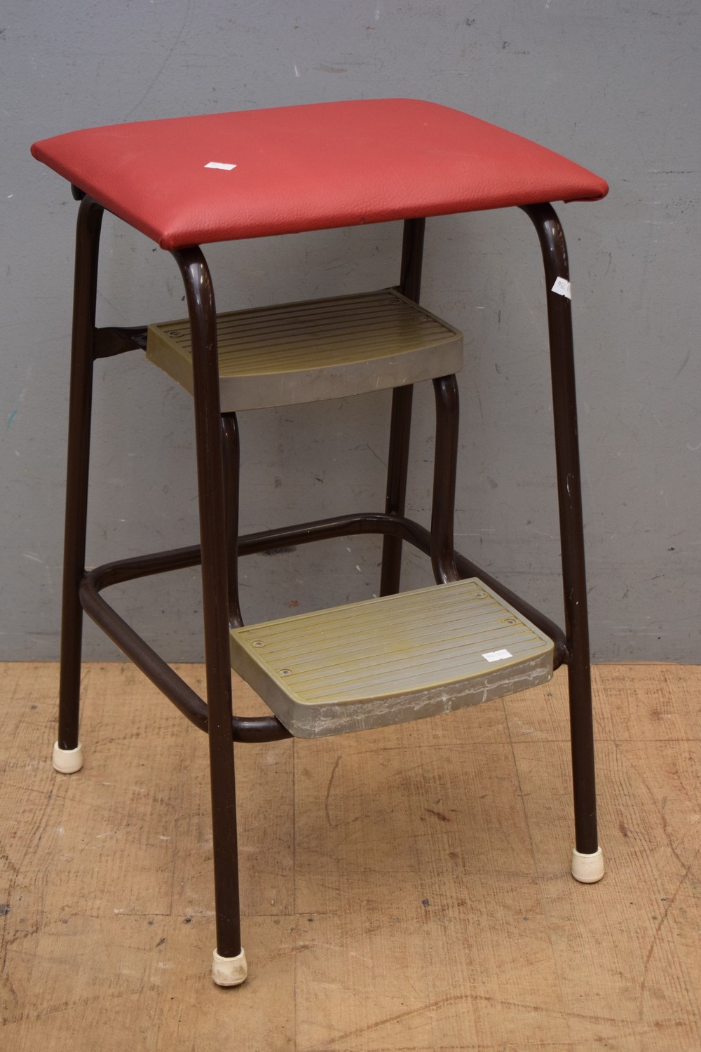 A MID-CENTURY STYLE FLIP TOP STEP UP STOOL ( 62H X 39W X 34D CM) (LEONARD JOEL DELIVERY SIZE: MEDIUM)