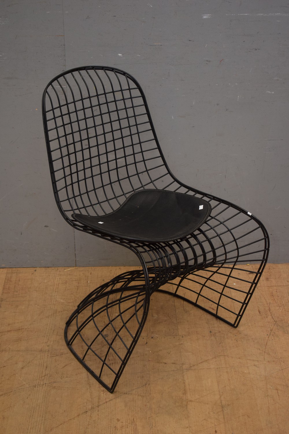 A VINTAGE VERNER PANTON STYLE WIRE CHAIR WITH CUSHION (85H x 51W x 61D CM) (LEONARD JOEL DELIVERY SIZE: LARGE)