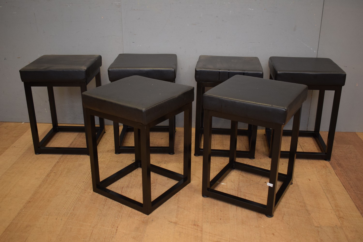 A SET OF SIX BLACK VINYL STOOLS (A/F) ( 47H X 34W X 34D CM) (LEONARD JOEL DELIVERY SIZE: LARGE)
