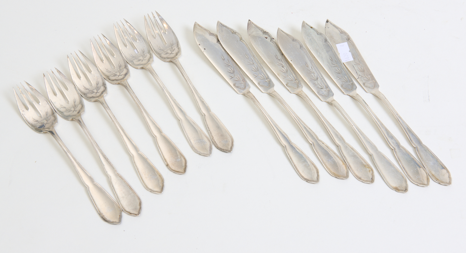 A SET OF SIX 800 SILVER KNIVES AND FORKS, 592G, LEONARD JOEL LOCAL DELIVERY SIZE: SMALL