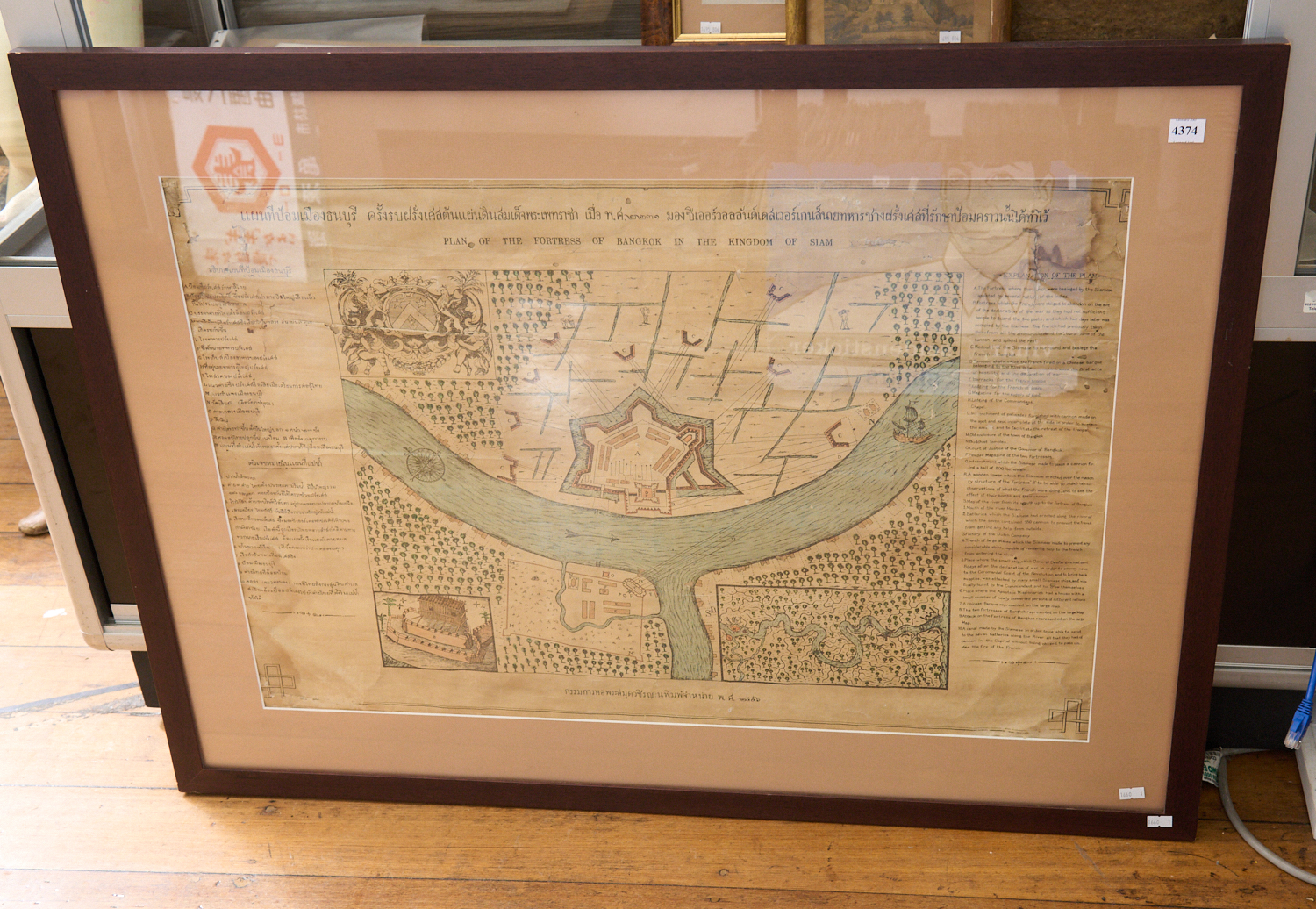 A 19TH CENTURY FRAMED MAP 'PLAN OF THE FORTRESS OF BANGKOK IN THE KINGDOM OF SIAM' W.96CM X 72CM, LEONARD JOEL LOCAL DELIVERY SIZE: SMALL