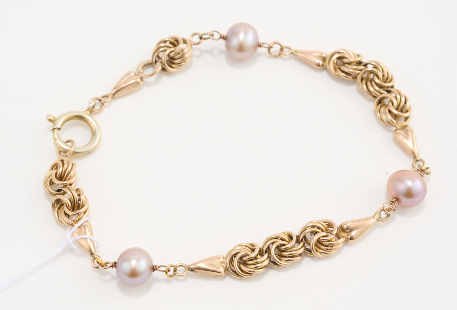 A CULTURED PEARL SET BRACELET IN 9CT GOLD, TOTAL LENGTH 195MM, 6.6GMS