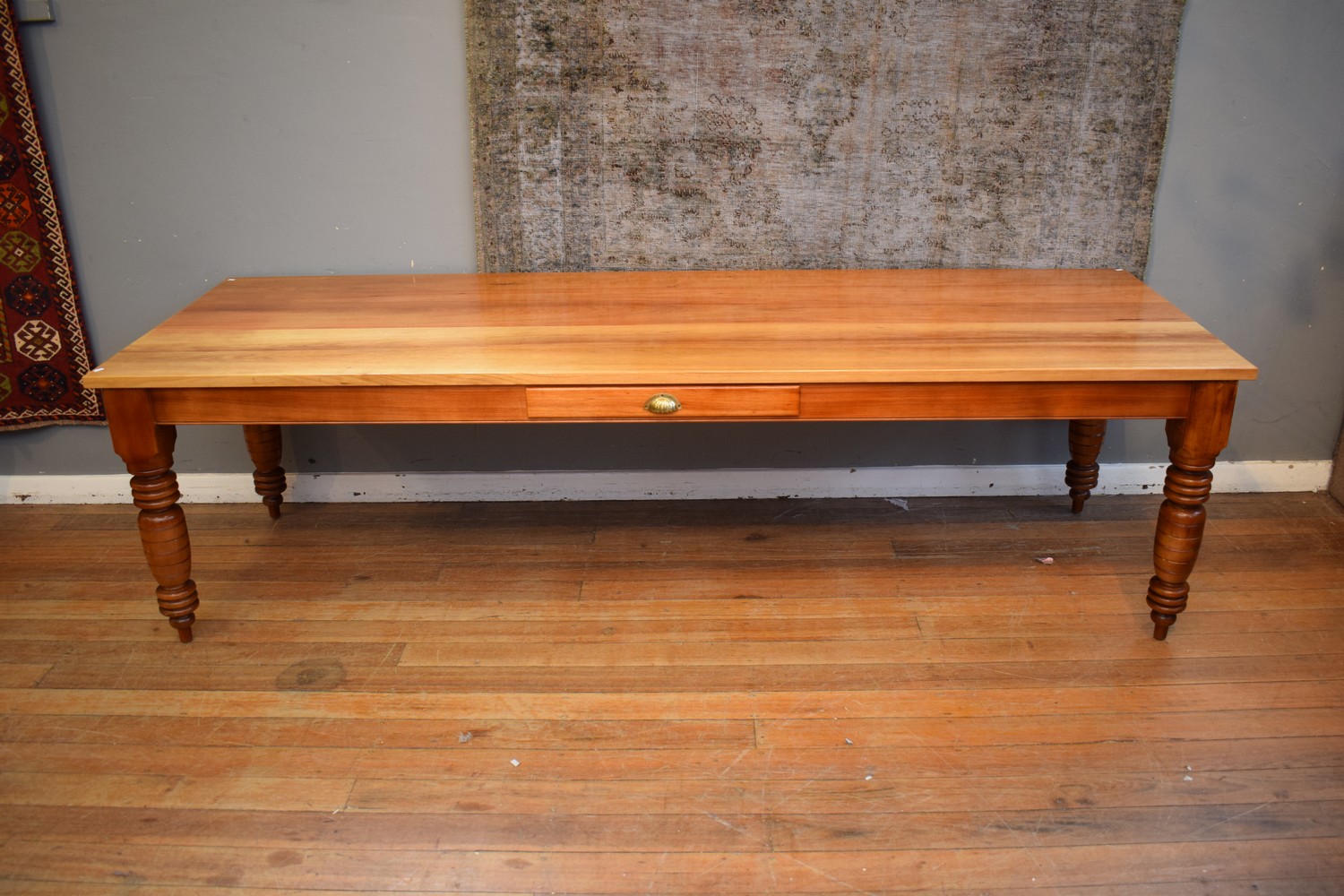 A BLACKWOOD DINING TABLE WITH SINGLE DRAWER ( 76H X 270W X 90D CM) (PLEASE NOTE THIS HEAVY ITEM MUST BE REMOVED BY CARRIERS AT THE CUSTOMER'S EXPENSE. LEONARD JOEL STAFF CANNOT ASSIST CARRYING THIS ITEM) (X-LARGE ITEM)