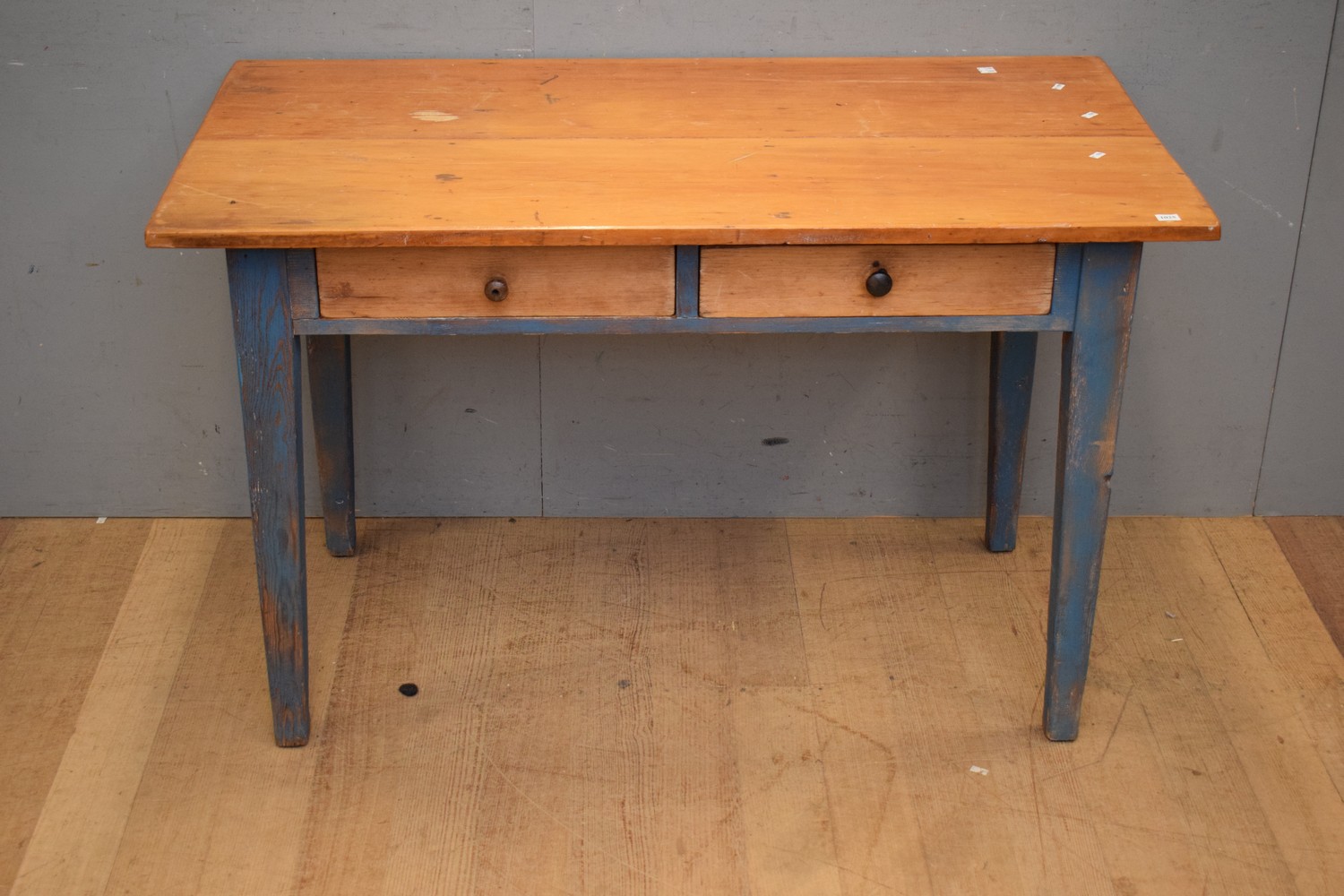 A RUSTIC TIMBER TWO DRAWER TABLE (A/F) (74H x 119W x 64D CM) (LEONARD JOEL DELIVERY SIZE: LARGE)