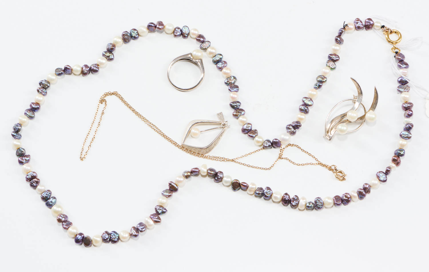 A THREE STONE SAPPHIRE AND AQUAMARINE RING