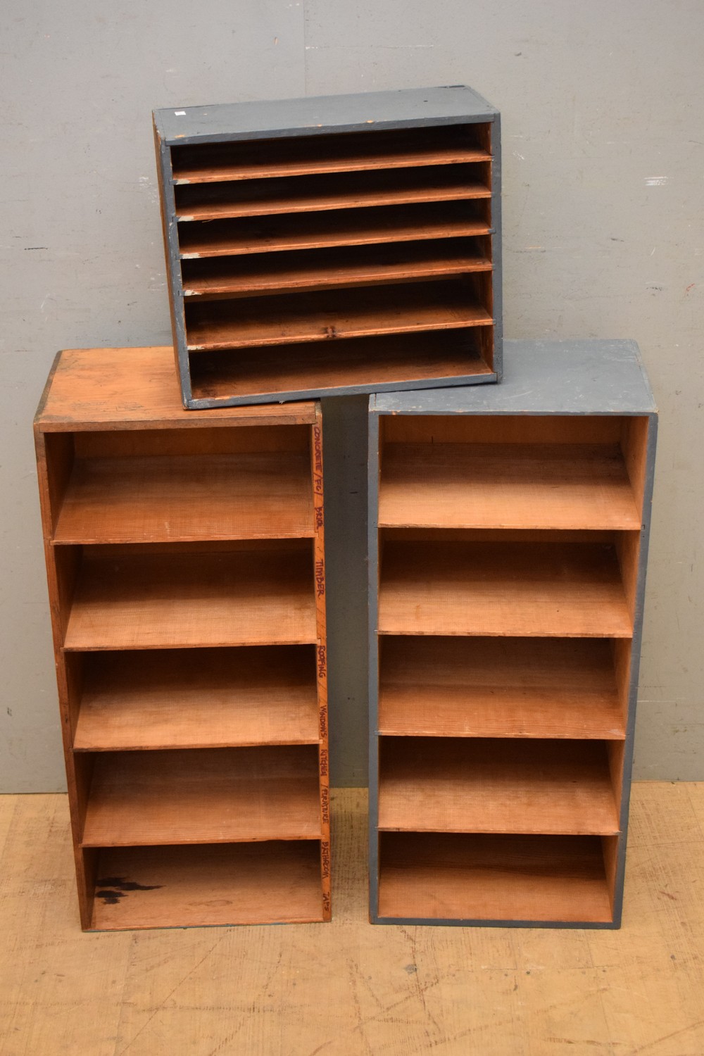 A COLLECTION OF THREE AUSTRALIAN PINE SHELVING UNITS ( 78H X 36W X 28D CM) (LEONARD JOEL DELIVERY SIZE: LARGE)