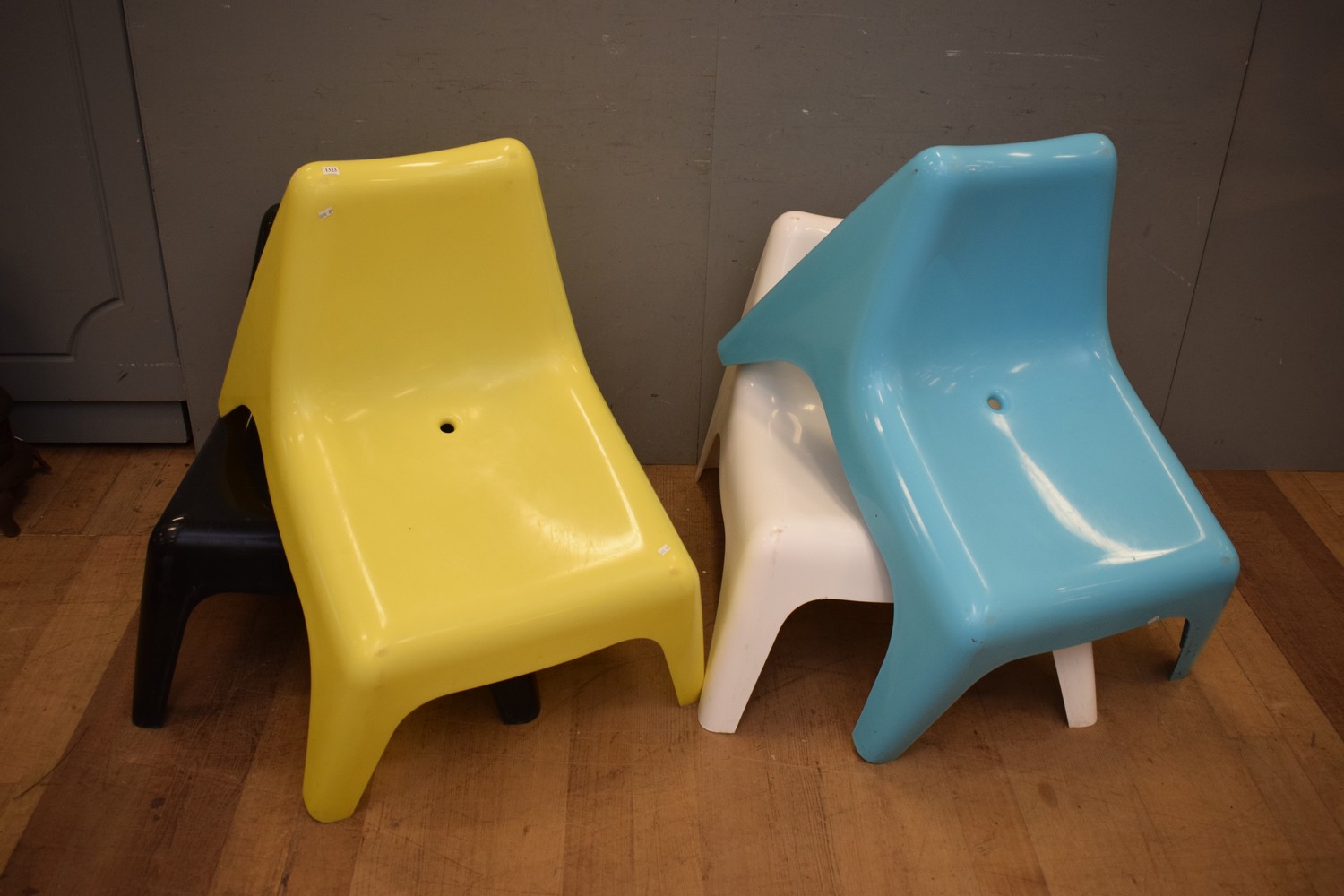 SET OF 4 STACKING PLASTIC 'MULTI COLOURED' CHAIRS (70H x 58W x 86D CM) (LEONARD JOEL DELIVERY SIZE: LARGE)