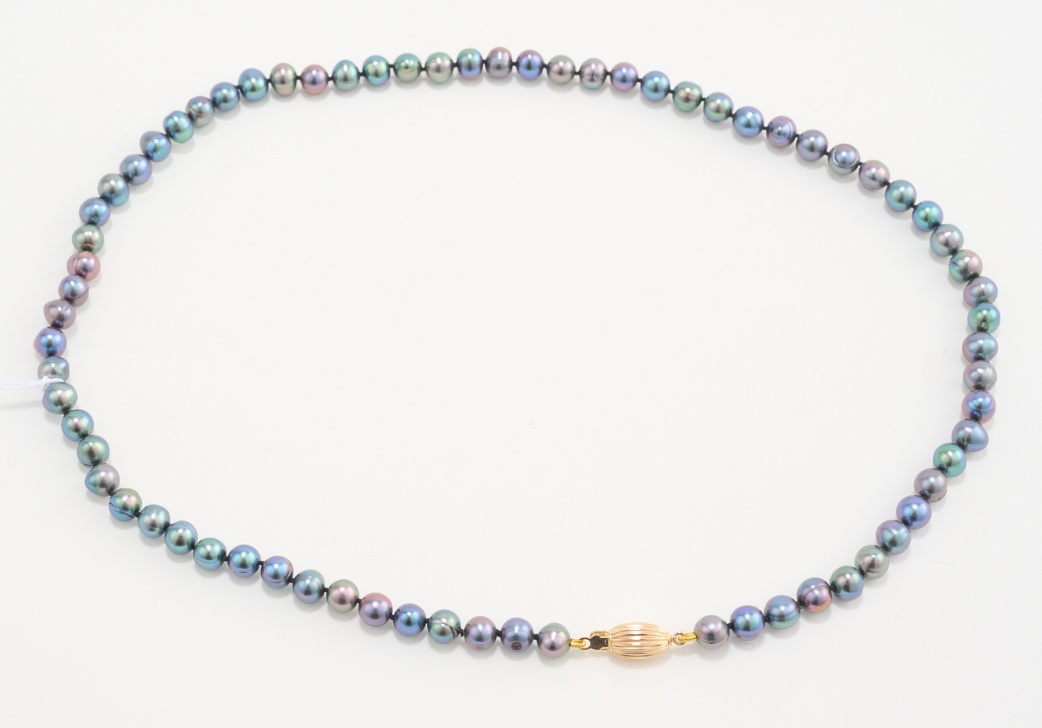 A STRAND OF FRESHWATER PEARLS TO A 14CT GOLD CLASP, BY FAZIO JEWELLERS, BOXED