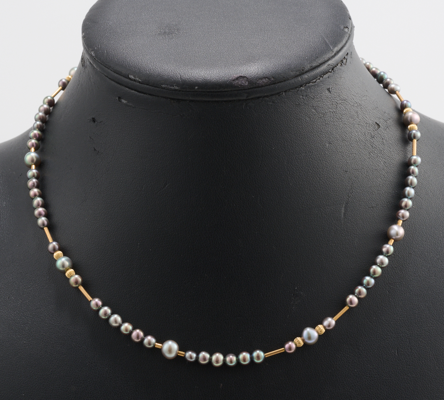 A FRESHWATER PEARL COLLAR IN 14CT GOLD, BY FAZIO JEWELLERS, BOXED