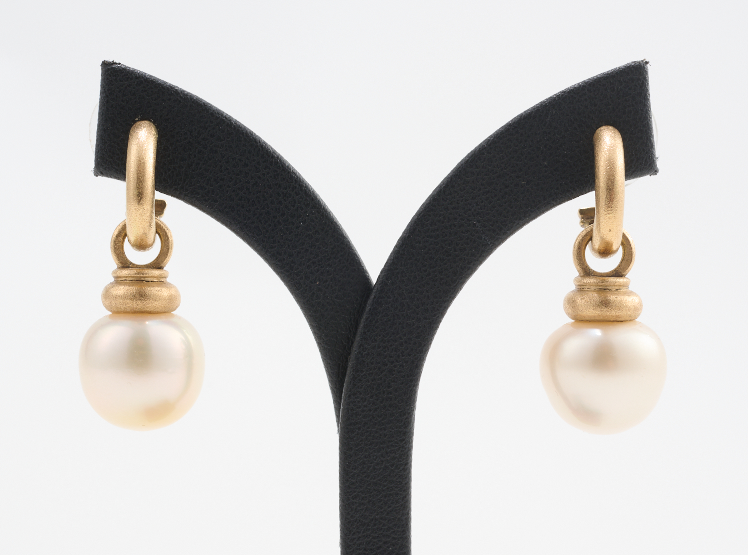 A PAIR OF SOUTH SEA PEARL EARRINGS TO BRUSHED DETATCHABLE HOOPS IN 14CT GOLD, 11.6GMS