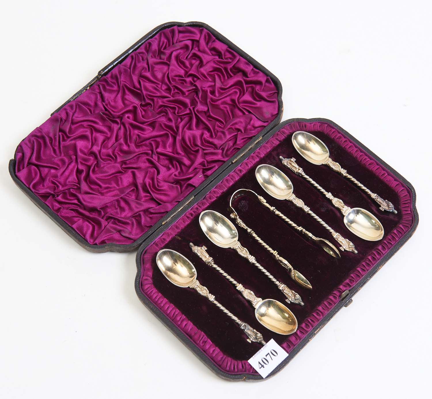 A STERLING SILVER APOSTLE TEASPOON AND TONG SET, LEONARD JOEL LOCAL DELIVERY SIZE: SMALL