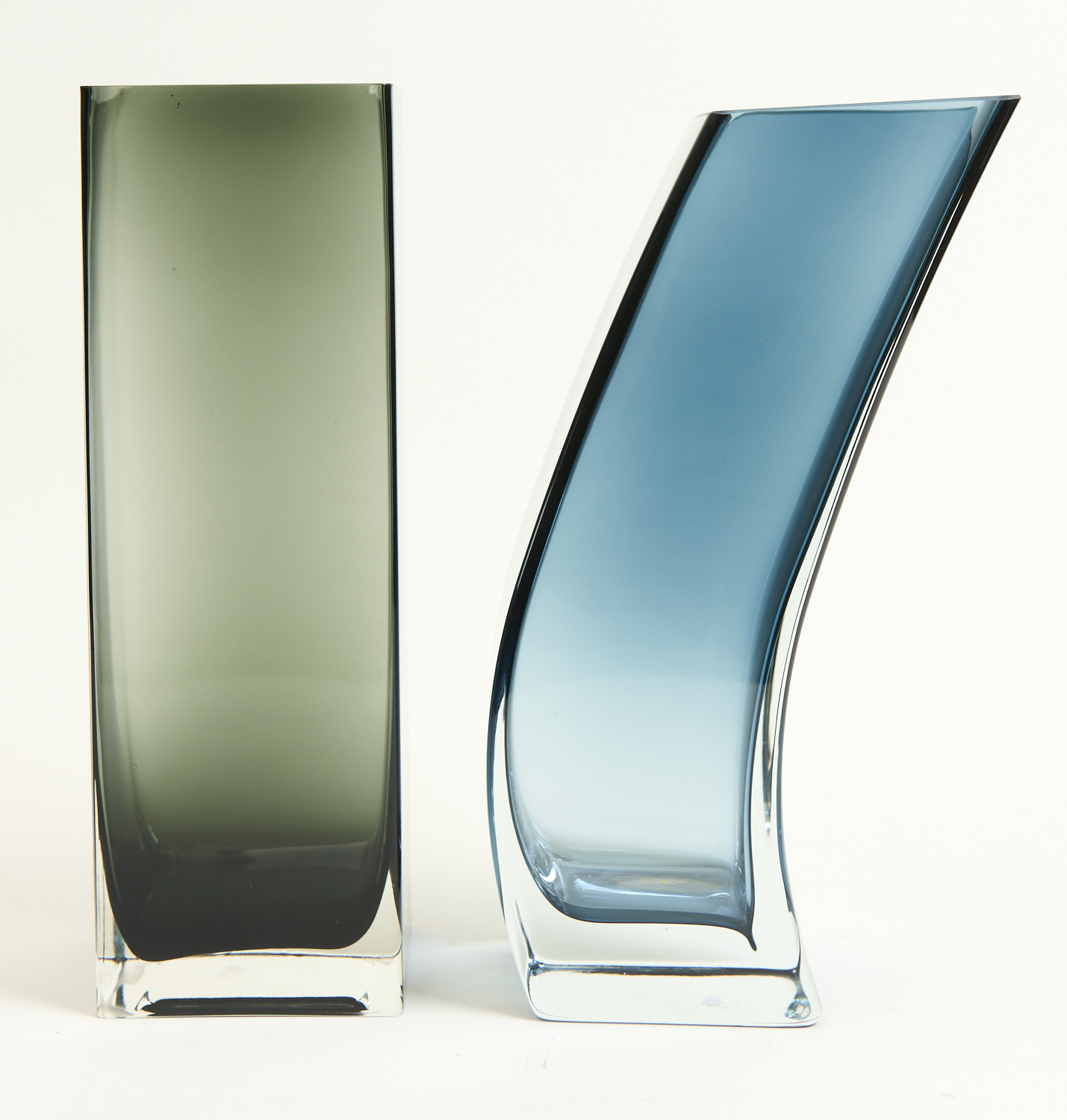 TWO DARK GLASS VASES (30 CM H), LEONARD JOEL LOCAL DELIVERY SIZE: SMALL