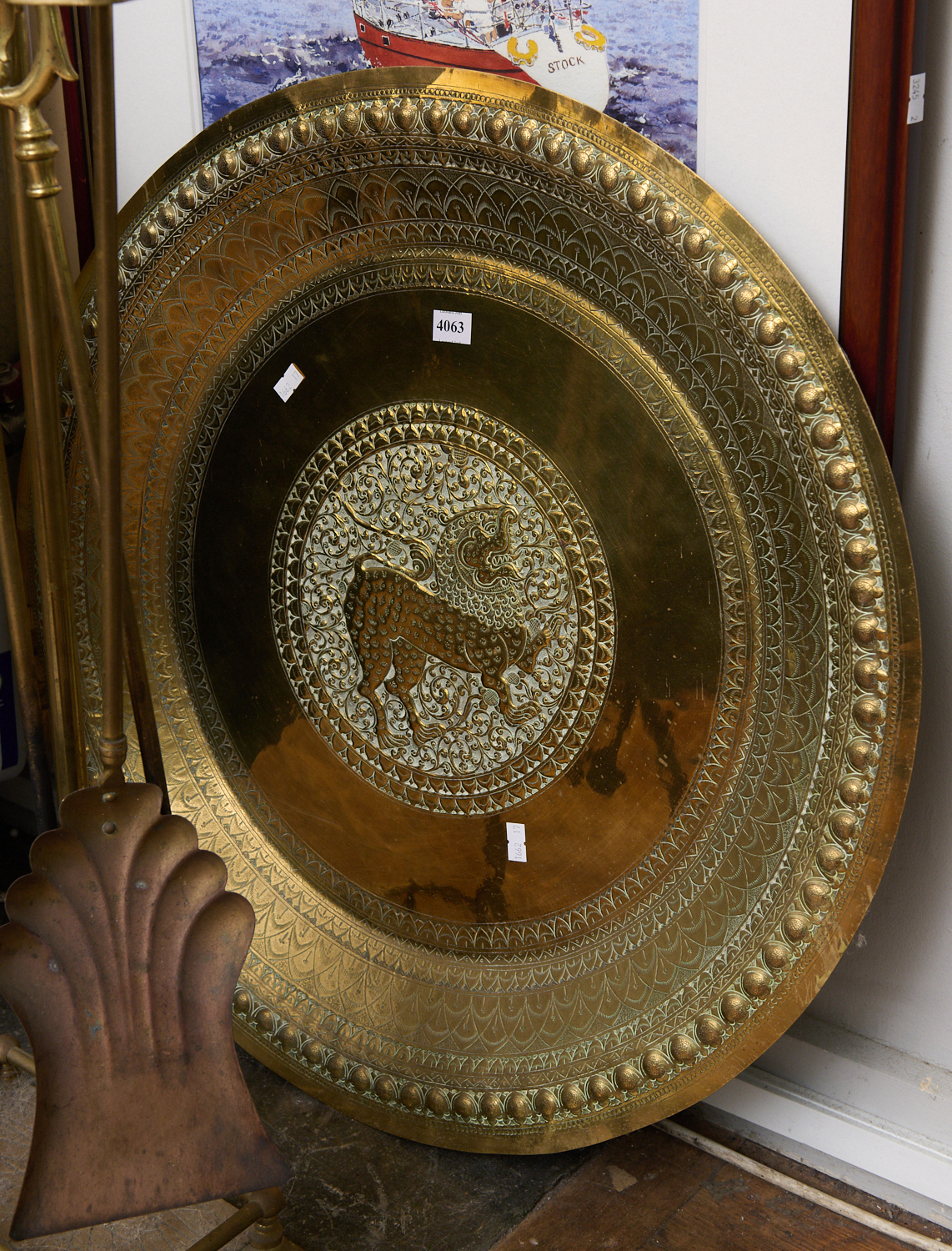 A BRASS WALL PLAQUE (60 CM D), LEONARD JOEL LOCAL DELIVERY SIZE: SMALL