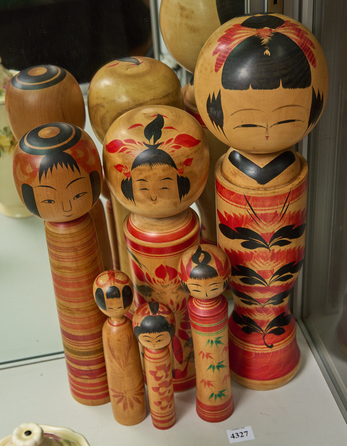 COLLECTION OF SIX VINTAGE HAND PAINTED WOODEN JAPANESE KOKESHI DOLLS, LEONARD JOEL LOCAL DELIVERY SIZE: SMALL
