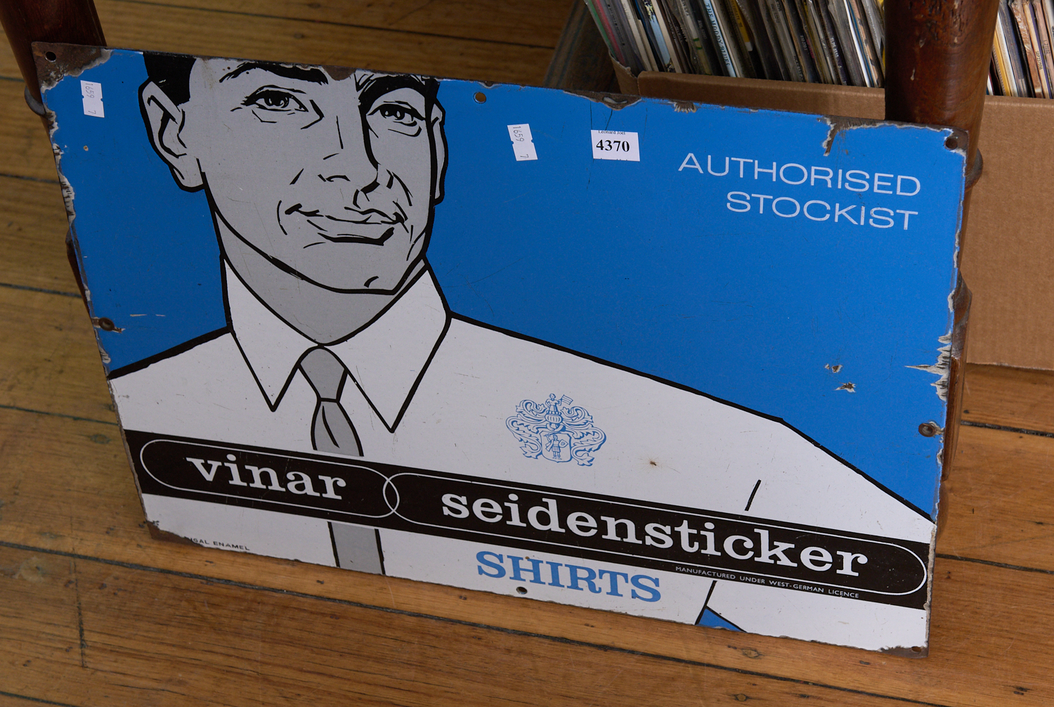 A VINAR SEIDENSTICKER SHIRTS ENAMEL ADVERTISING SIGN W.51CM X 38CM, LEONARD JOEL LOCAL DELIVERY SIZE: SMALL