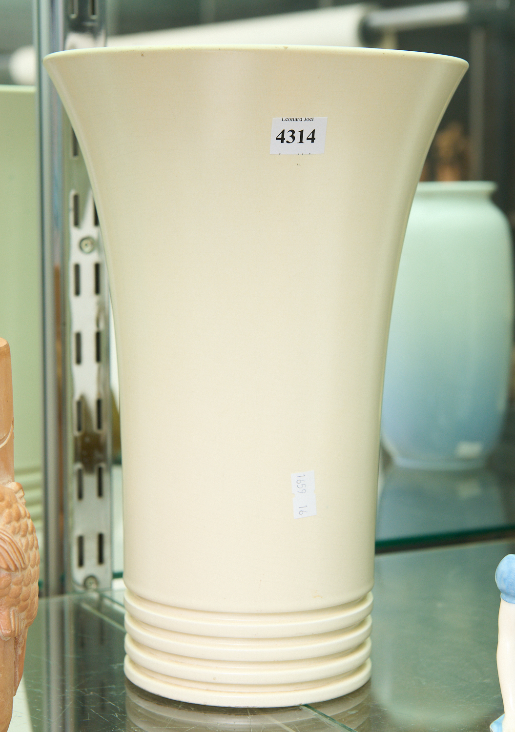 AN ART DECO CREAM GLAZE CARLTONWARE FLARED VASE WITH RIDGED BASE (30 CM H), LEONARD JOEL LOCAL DELIVERY SIZE: SMALL
