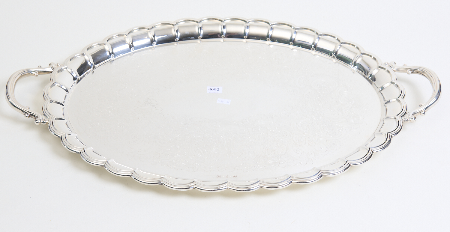 LARGE ENGLISH BARKER ELLIS SILVERPLATE TWO HANDLED SERVING TRAY (70 CM W), LEONARD JOEL LOCAL DELIVERY SIZE: SMALL