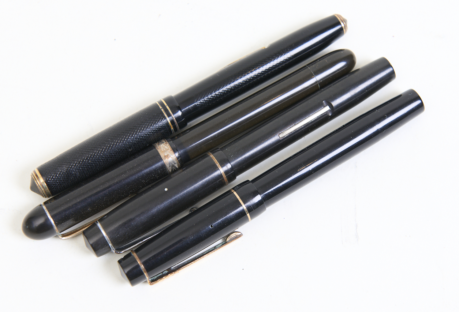 GROUP OF FOUR ANTIQUE FOUNTAIN PENS ALL WITH 14CT GOLD NIBS, LEONARD JOEL LOCAL DELIVERY SIZE: SMALL
