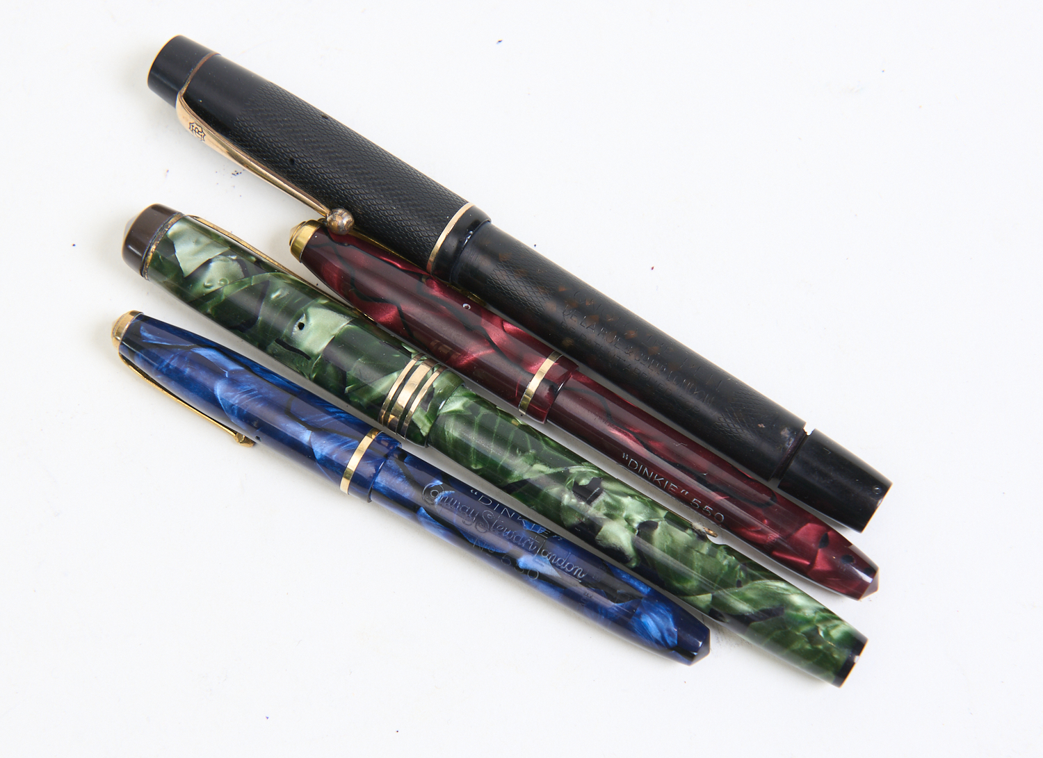 GROUP OF FOUR FOUNTAIN PENS INCLUDING 2 CONWAY STEWART AND 2 RARE MINI VERSIONS, LEONARD JOEL LOCAL DELIVERY SIZE: SMALL