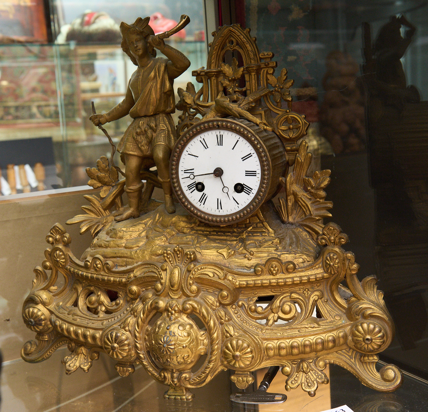 A GILT MANTLE CLOCK (A/F), LEONARD JOEL LOCAL DELIVERY SIZE: SMALL