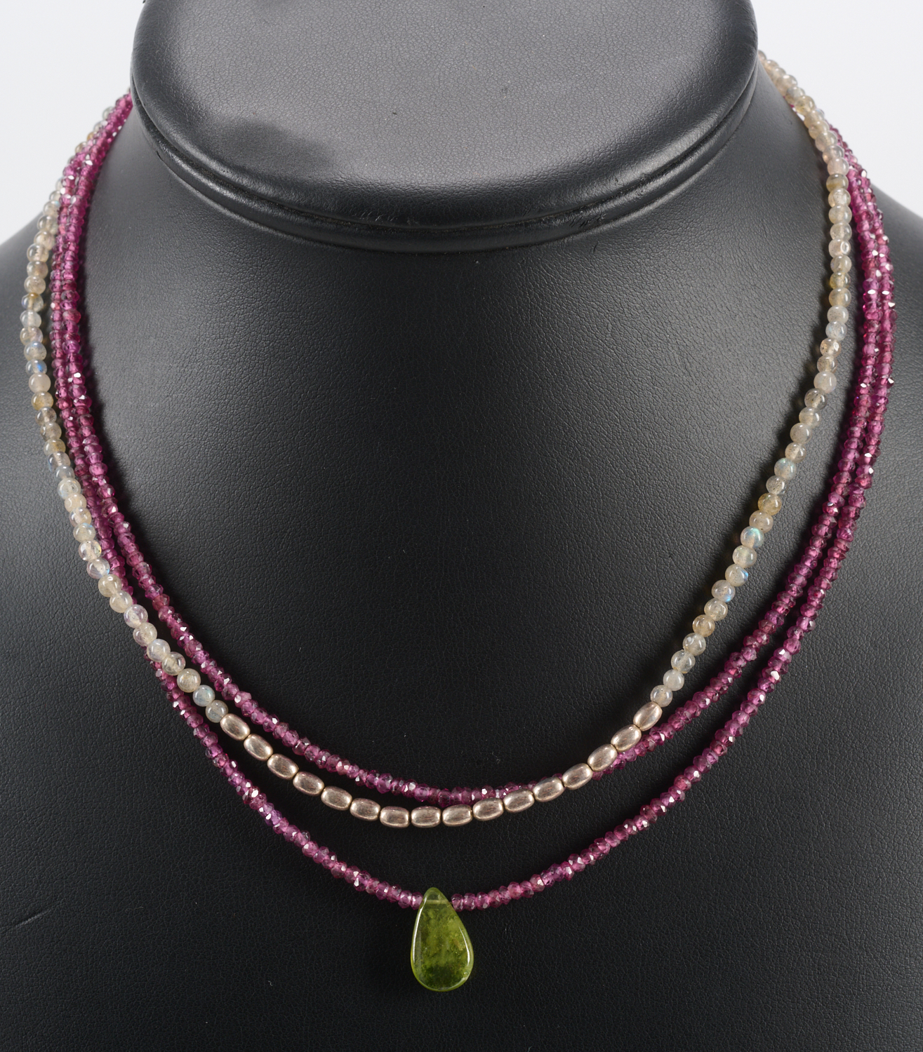 LABRADORITE AND SILVER BEAD NECKLACE TO STERLING SILVER CATCH, LENGTH 44CM AND A TOURMALINE FACETED NECKLACE, LENGTH 41CM