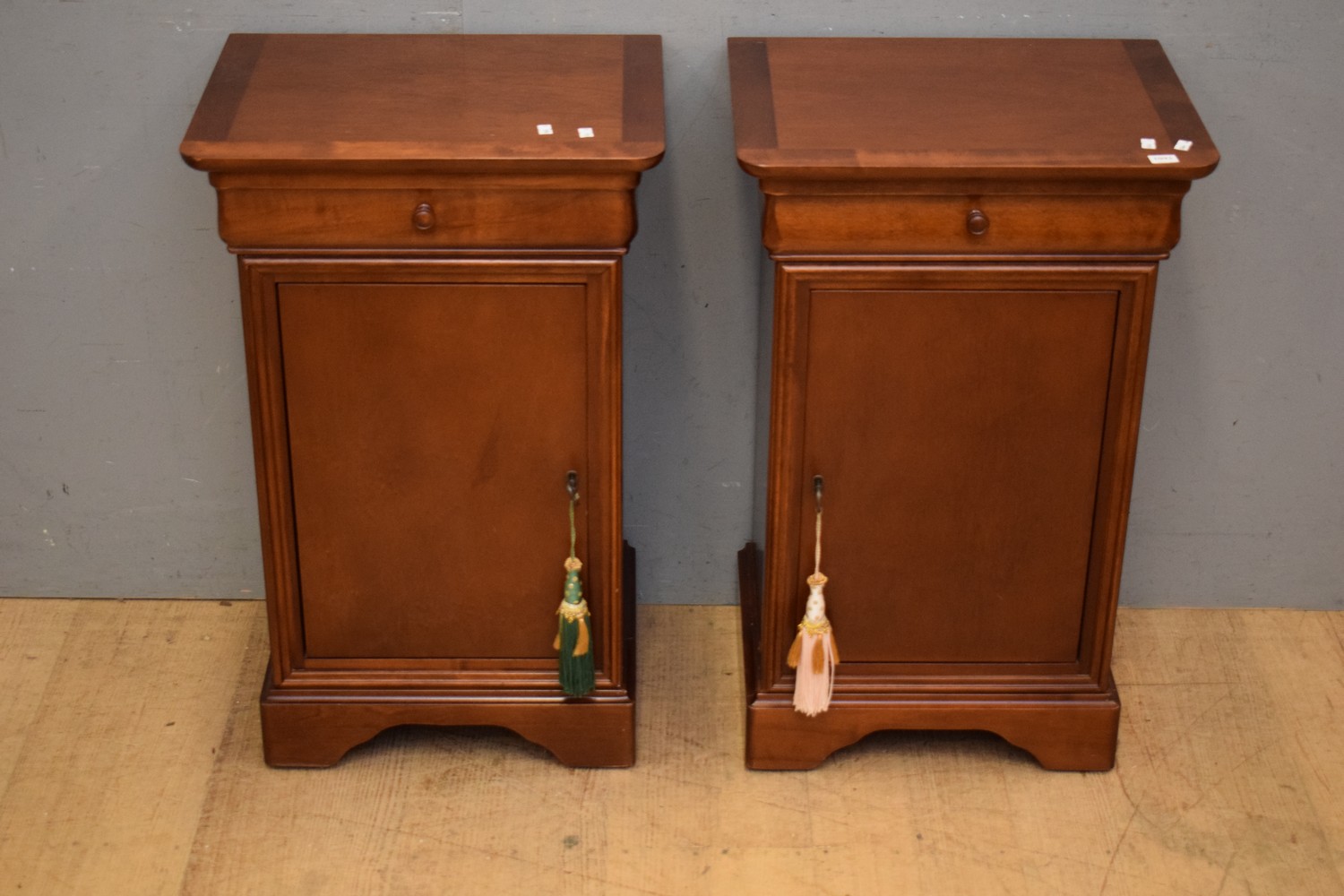 A PAIR OF VICTORIAN STYLE TIMBER BEDSIDE CABINETS (72H x 45W x 34D CM) (LEONARD JOEL DELIVERY SIZE: LARGE)