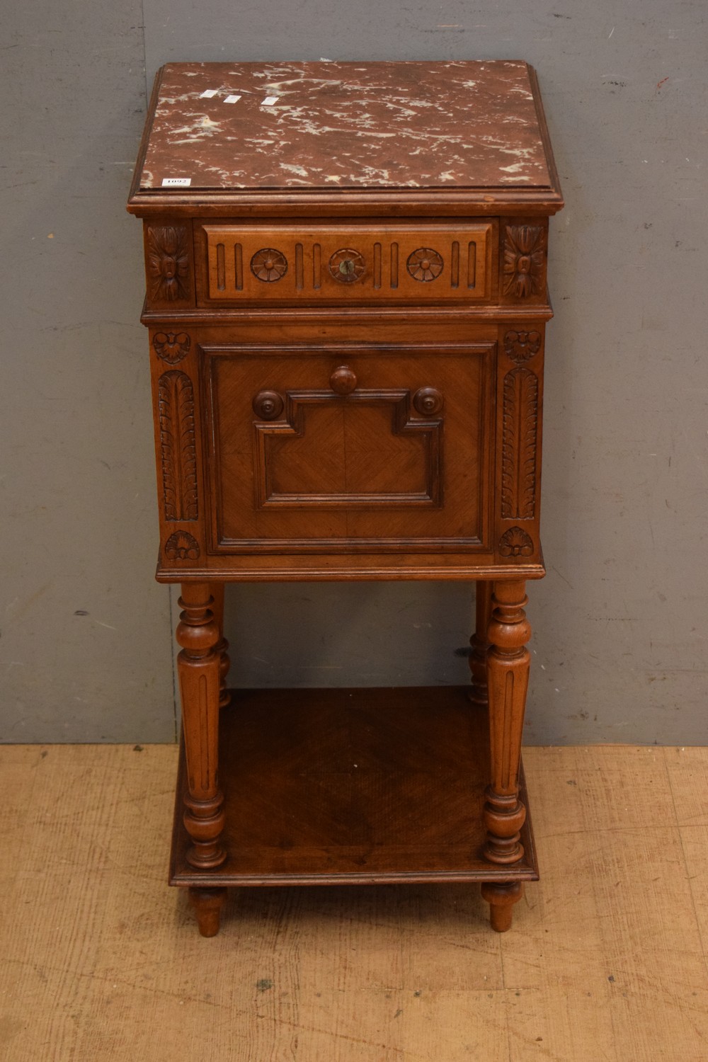 A LOUIS XVI STYLE MARBLE TOP BEDSIDE CABINET (A/F) (86H x 40W x 39D CM) (LEONARD JOEL DELIVERY SIZE: LARGE)